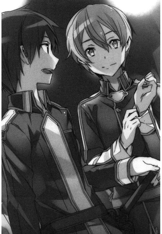如果是平常的桐人,在说出这番话的时候,一定会露出小孩子一样自豪的笑容,但现在他却只是维持著严峻的表情,静静的盯着自己的黑剑,而后吐了一口气,并步向前走到了墙边,伸出右手抓住了黑色的皮鞘。