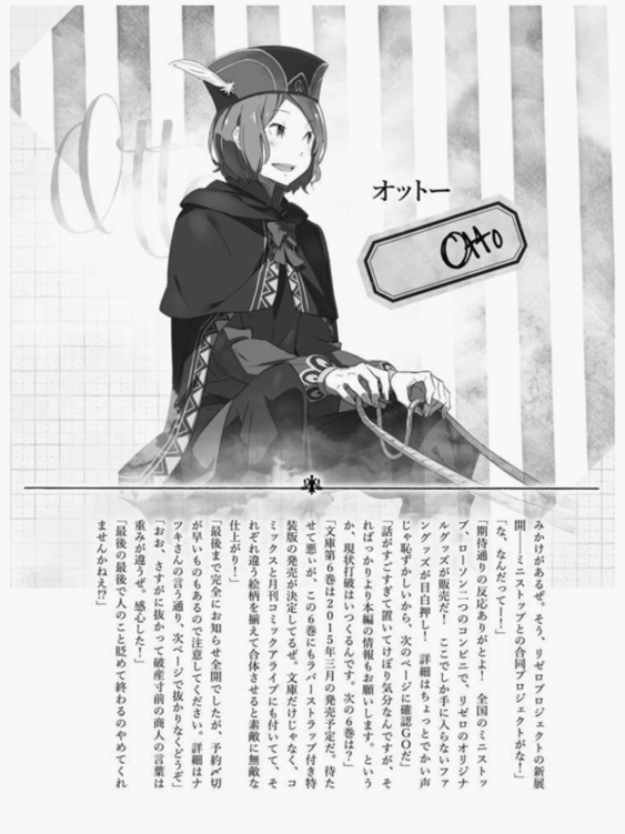 再次,REZERO的漫画化也开始了,第一章在越看comic alive上连载的是マシセダイチ先生。第二章是枫月诚先生在ビッグガンガン上连载。这孩子那孩子都被表情生动地描绘出来,实在是作者幸运至极了。十分感谢!