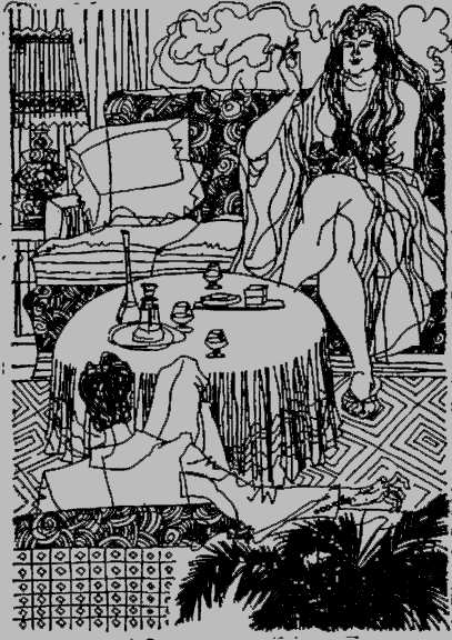 惠美子依然身披浴巾,坐在沙发里,满不在乎地在花冈进面前架起了二郎腿。浴巾开缝时,胖乎乎的白大腿……都清晰地映入花冈进的眼帘。花冈进目不转睛地盯着,仿佛看的不是个活人。