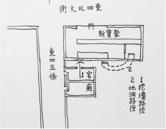 金木手绘的平面图,根据距离估算,至少挖了三天