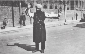旧上海的英法租界有明确的界限,不能相互跨越界限执法。图片为英租界的印度巡捕,当时的印度巡捕以锡克教徒为多,通常佩戴红色头巾,故称“红头”。“阿三”的起源则说法不一,一种说法是英国对警察的称呼“阿Sir”的转音;另一种说法是,印度巡捕对英国长官经常回答“Yes, I see”,与上海话的“阿三”谐音