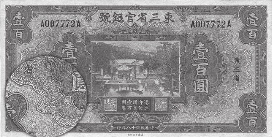 1924年奉天发现的假钞,除了左下角花纹三条线的长度比原版真钞短一点,其他完全一样,绝大多数人无法识别
