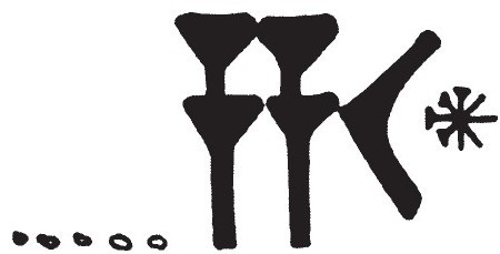 “中间这三个粗一点儿的符号,”兰登继续说道,“是亚述语中的‘鱼’字。这叫象形文字。如果你仔细看,你可以想象鱼的嘴巴向右张开,身上都是三角形的鳞片。”