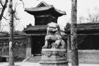走回饭店,在服务处租了辆出租车,但司机说他也没去过嘉应观,结果一过黄河,我们不得不在乡间绕来绕去,多走了好些冤枉路。两小时后,我们终于找到了这座神庙,它就在通往武陟县城的公路边,一个叫二铺营的村子附近,与黄河南岸的邙山遥相呼应。一下车,我和司机都被嘉应观的气势给镇住了。本来这巨大的庙宇建筑群耸立在辽阔空旷的地方就够宏伟了,现在又只有我们两个游客,就更显出了这建筑群的宏伟气势。这里平时少有人来,因此大门紧闭。我们敲了足有五分钟的门,看庙人才出现。他看到我们,一脸惊奇,他说,这是唯一的一次假期有人来参观。