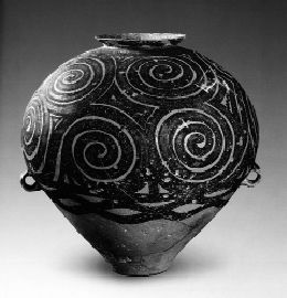 8点钟门卫一开门,我们就走进博物馆。由于要赶10点的汽车,征得门卫的同意后,我们便把背包留在门卫处,直接去参观五千年前新石器时代早期的彩陶展厅。这些彩陶最早是由瑞典考古学家安德生于1922年发现的,此前他在邻省陕西和河南也都有发现。之所以甘肃出土的这些陶器如此重要,是因为它们成为中国已知最早的艺术瑰宝代表作。作为陪葬品的陶罐上画有红黑两色图案,或许它们是受了流经此地黄河波涛的启发而作。陶罐体形硕大,数量仅为十几个,但每个陶罐上的图案却略有不同。很显然它们是用来在冥界盛饮用水的。我们在此徘徊良久。这些陶器如此简单,却又是如此精美。