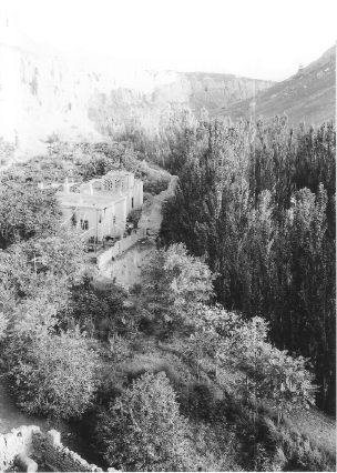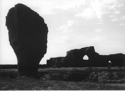 很不幸,洋鬼子艺术收藏家的掠夺使得柏孜克里克洞窟文物残存不多,现在只留下这个古老遗址本身这一神奇壮观景象。洞窟凿刻在砂石岩峡谷的西墙上,峡谷入口处只有一小块地方勉强能让维吾尔族牧人容身。北面旷野之外,远远耸立着白雪皑皑的天山山峰,那是流经这片恐怖地带的河水的发源地。河水从此流过并非大自然的巧合;1500年前的僧人们开凿了这片洞窟,使之成为艺术宝藏也并非偶然。发源于远处天山的河水经地下运河被引到这里,穿过峡谷,流入南面的沙漠。当地居民不辞辛劳这样做的原因是,1500年前的沙漠中并非只有沙漠。峡谷与沙漠交界处向南几公里外,就是高昌故城,它是开凿山洞的僧人们的家乡。