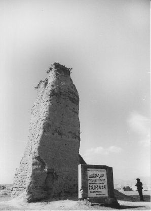 我们这次的参观活动从游览苏巴什佛寺遗址开始。它位于库车县城西北方大约20公里处的库车河两岸。河水是从附近的克孜尔山中流淌出来的。河的两岸相隔差不多一公里,冬天可以直接走到对岸去。我们到库车的时候是秋天,乘吉普车只能驶入一侧河岸。