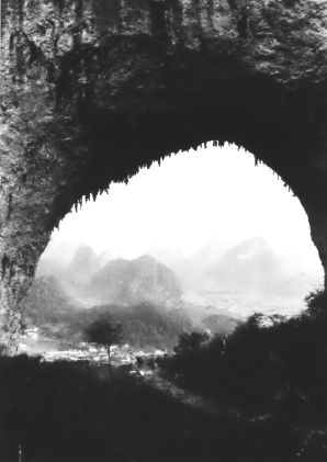 9个小时后,我在离桂林尚有一小时路程的阳朔下了车。趁着离天黑还早,我把行李往一家名叫四郎山宾馆的破旧地方一扔,租了辆自行车,从镇子里一路骑到了乡下。半个小时后,我来到了月亮山。此时正是日落时分。