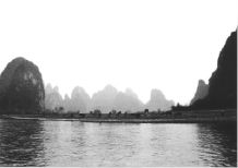 在中国所有内河旅游中乘船游漓江是最受欢迎的项目,甚至超过长江三峡游。游客从桂林登船,在几百座青翠的石灰岩山峰中蜿蜒穿行,顺流而下到达阳朔,然后乘车返回桂林。可是,这6个小时的游程价格不菲,需要30美元,而从阳朔逆流而上,单程只要6美元。这也是我选择住在阳朔的另一个原因。