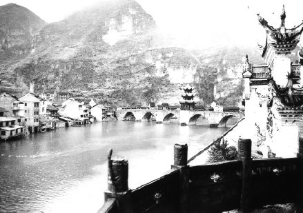 我来访的时候是三月份,当时木匠们正开始为美景增添最后一道光彩:在会馆门口的对面建一个可以俯瞰舞阳河的茶亭,我想这个亭子一定会是一个品茶赏酒的好去处。但亭子还没有建好,而且天还是太冷。我只能不断地走动,最后决定通过那座连接着会馆的古代石桥,过河去老住宅区看看。