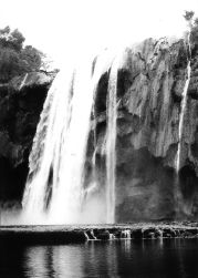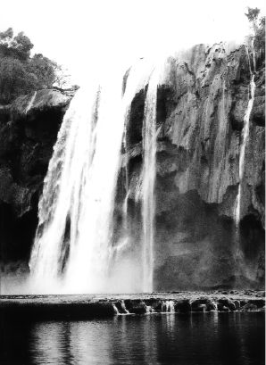 黄果树宾馆是离瀑布最近的一家宾馆,只有几百米远。我办好入住手续后,早早吃了午餐,跟着其他的游客沿着一条小路来到瀑布的下面。瀑布得名于一棵长得像榕树的巨大的黄果树,巨树长在瀑布边上,明朝的游客首次发现瀑布的时候以这棵树为瀑布命名。在它早期的游客中有最伟大的游记作家徐霞客,他写的游记很快就吸引了其他人前来。现在,每天都有几百人到这里游览。黄果树瀑布被称为中国最大的瀑布。我不太清楚为何它能得此殊荣。它的高度是70多米,并非中国落差最大的瀑布,而黄河壶口瀑布的水量远大于这里。但是这里的瀑布雄伟壮观,游客不仅可以俯瞰,还可以仰望,甚至还可以从瀑布的后面欣赏。我发现,从瀑布的底部沿着小径可以一直走到瀑布后面的一个石灰岩岩洞,岩洞从瀑布的一侧延伸到另一侧,中间有6个洞口,站在洞口,游客可以从几尺远甚至几寸远的地方近距离地接触声如雷鸣的水幕。当天晚上,我躺在床上,听着瀑布的轰鸣声入睡。