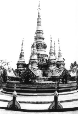 勐龙的黑塔就是一个典型的例子。实际上,它已经褪色不少。尽管它高达27米,是这一地区最高的塔,也并未给人留下特别的印象。唯一让我感兴趣的是佛塔周围的矮墙,像一条长龙,蜿蜒起伏的龙身使得这个本来世俗的地方变得庄严神圣。