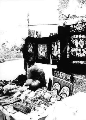 再说“藏族酒吧”,第二天早晨我又去点了“达赖喇嘛早餐”,就是一大碗燕麦片、水果、酸奶,还有一份过期的伦敦《太阳报》。这些,加上几杯卡布奇诺和服务生的几句忠告,让我马上行动起来。我走到马路对面,租了辆自行车,骑到大路上。我想再参观一些大理一日游没看到的地方。第一个景点其实是上百个景点,就是看城里的两条大路沿街有多少专卖扎染服饰的商店。我在其中一家待了好大一会儿,给朋友买了两条蓝白道的长袍,给自己买了件衬衫。我得说一下,在过去这二十年里,每逢特殊场合我就会穿上它。我穿着它朗诵诗歌或发表演说。衬衫上印满了扎染的小蝴蝶,它总是让我回想起在大理的时光。