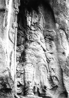 我在此徘徊良久,然后沿着一条岔路走下崖壁,穿过一座石桥,来到山谷对面正对着寺庙的另一面山崖。这里只有三个石窟,有两个很难觅踪影。但功夫不负有心人,我找到了两个,第二个特别有意思。其中一尊刻像长着圆圆的眼睛和波斯贵族的鹰钩鼻。在马可·波罗肩负忽必烈可汗的使命穿越云南的几个世纪之前,中东地区的商人和使者已经经丝绸之路穿过西藏来到了这里。我忽然觉得,坐在拖拉机的后斗里颠簸三个小时的经历已算不上什么磨难了。
