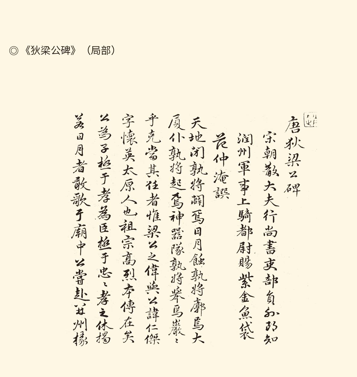 狄仁杰不仅为武周重臣,在朝野举足轻重,后世更成为一代名相。宋范仲淹为其撰写的《唐狄梁公碑》也成为历代热门碑文,书家如黄庭坚、赵孟等都曾书此碑,这里选录的是赵孟作品。该碑文极言狄仁杰的丰功伟绩,反映了历代知识分子的理想人格向往。