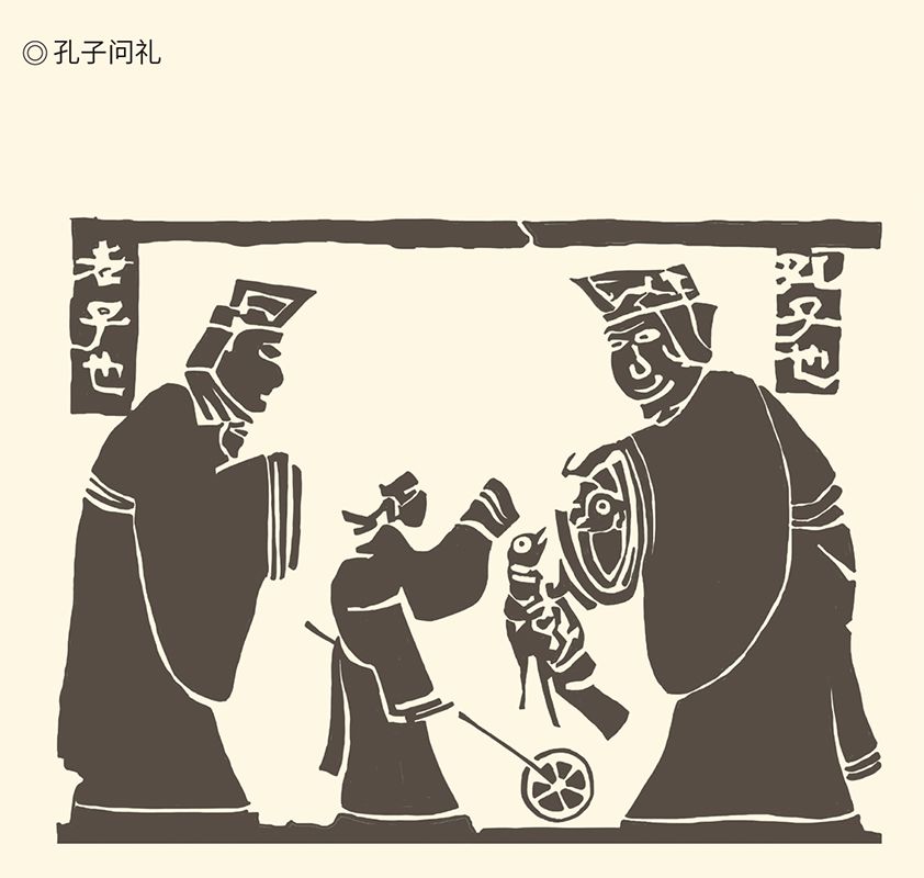 东汉“孔子见老子”画像石(局部),出土于山东嘉祥齐山村。史载孔子曾赴周都拜访老子问礼,时老子任周“守藏室之史”(近于国家图书馆管理员),多知周礼。孔子问礼于老子也在后世传为佳话。但二人及其各自学说在施政方法上的分歧巨大,恐怕是问礼时双方都没有预料过的。