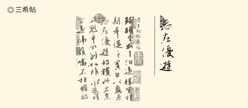 乾隆帝酷爱书法,在自己卧室旁设一小暖阁,用以珍藏三幅世之所稀的名帖,供他时时把玩。此阁名为三希阁,此三帖唤作三希帖。乾隆帝视《快雪时晴帖》为三帖之首,在帖前题写了“神乎其技”四个大字。《快雪时晴帖》共二十八字,被誉为“二十八骊珠”。
