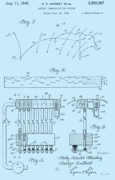 1940年初,拉玛和安太尔根据这个原理,设计出了一个飞机导航系统。安太尔设计了一对纸卷,分别安置在飞机和鱼雷里面,来指定变化频率的顺序。