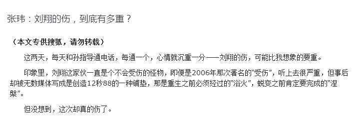 我已经没心思去纠正他了,因为我清楚地知道:刘翔退赛了。