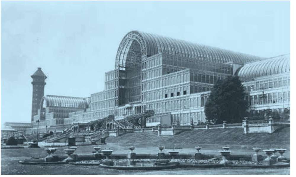 1851年在伦敦海德公园建造的“水晶宫”,由园艺家帕克斯顿设计