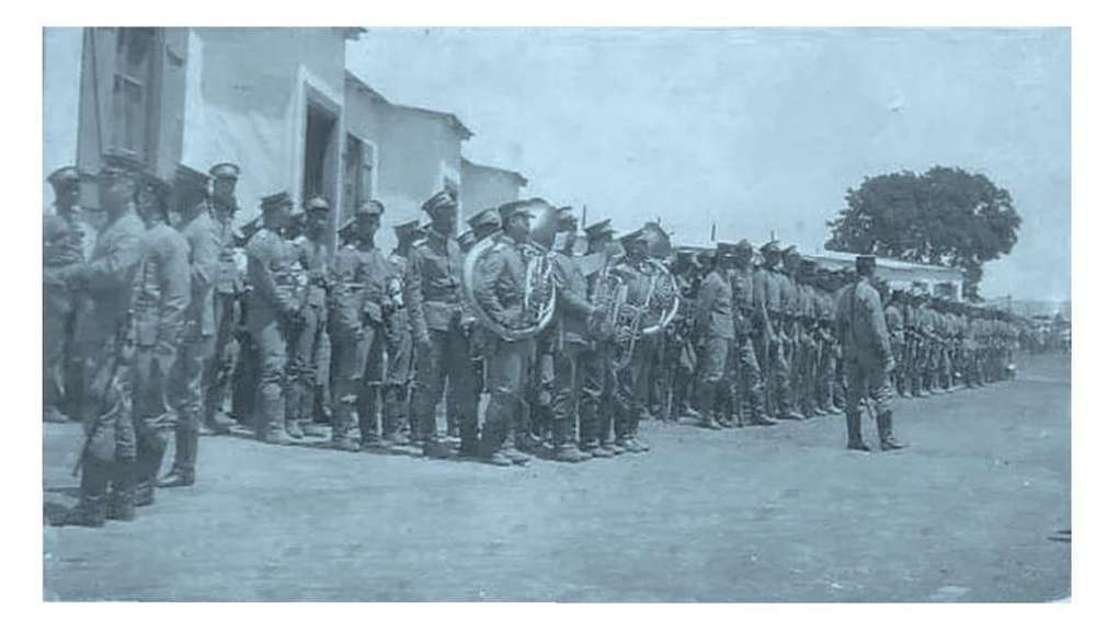 袁世凯麾下的北洋军当时接受清朝官员检阅的照片。北洋军的战斗力当时在全国首屈一指