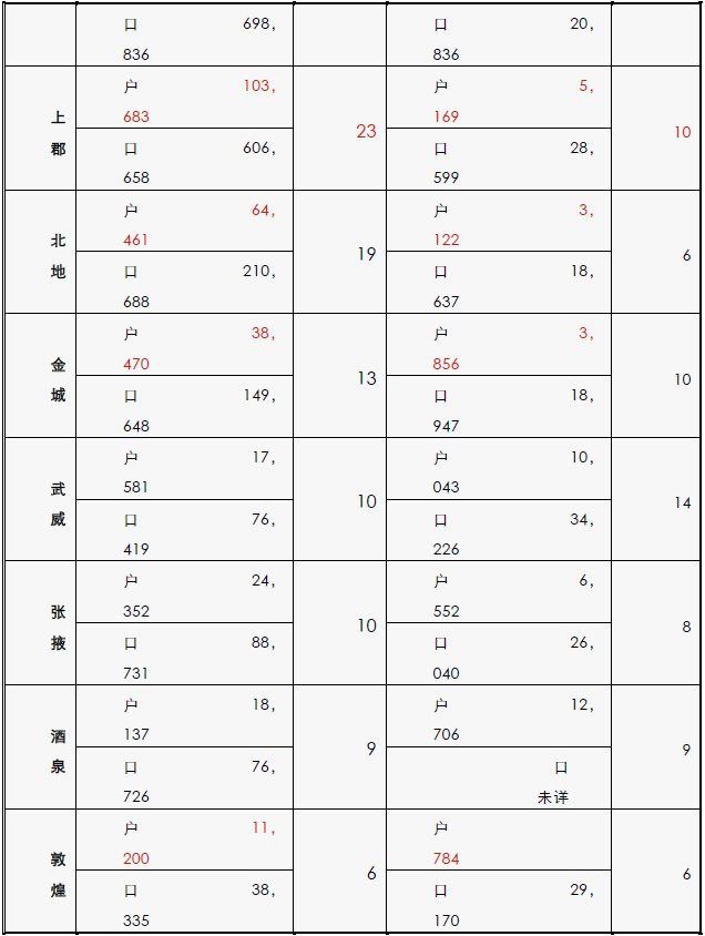 右表惟渔阳略增,余均锐减。敦煌一郡六城,仅有七百余户,尤觉荒凉。