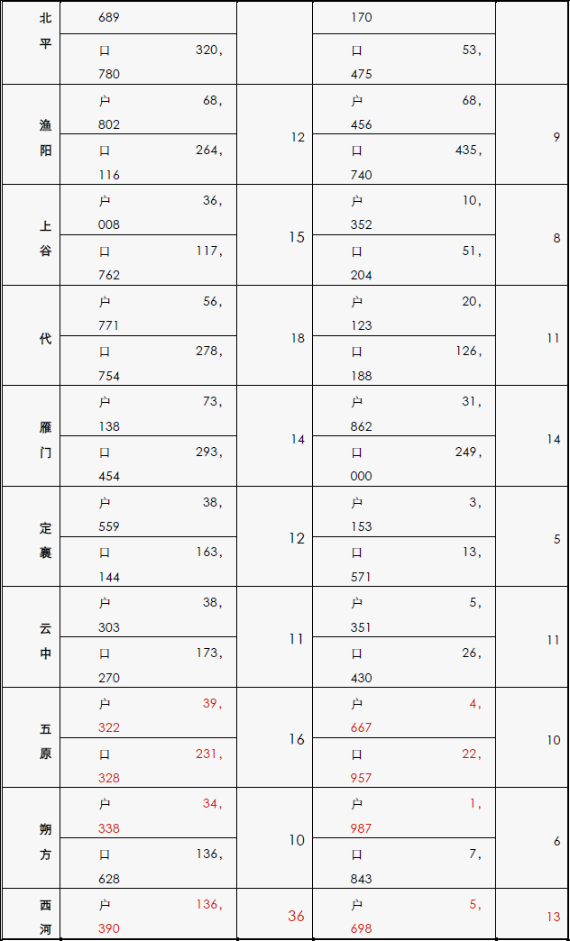 京兆 户 195,702 辖县:12 户 53,299 辖县:10