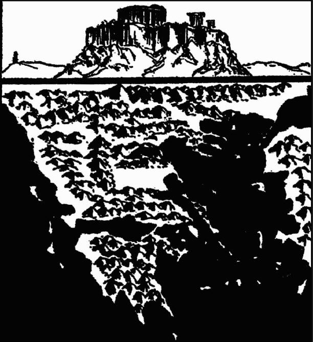 其中之一就是狄那里克的阿尔卑斯山,它从瑞士的阿尔卑斯山一直伸展到将希腊半岛一分为二的科林斯湾。半岛的南部近似于一个三角形,古希腊人曾误认为它是一个独立的岛屿(这不足为奇,因为连接半岛南北方的科林斯地峡大约只有3.5英里宽),他们称之为伯罗奔尼撒半岛或者珀罗普斯岛。这个珀罗普斯——按照古希腊的传说——就是主神宙斯之孙,坦塔罗斯(古希腊传说中宙斯的儿子。由于他向人类泄露天上的秘密,并杀死自己的儿子珀罗普斯,将其做成菜肴给诸神吃以试验他们的观察力,从而触怒诸神,罚他在冥界受苦——译者注)之子,在奥林匹亚,他被尊崇为优秀运动员之父。
