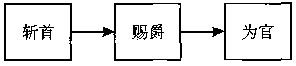 在军功爵创建之初,“爵”好像曾被用作官资。《韩非子·定法》云:“商君之法曰:斩一首者爵一级,欲为官者为五十石之官;斩二首者爵二级,欲为官者为百石之官。官、爵之迁,与斩首之功相称也。”一般认为,这就是有爵就可以做官的证据(80)。过去我也是那么看的,但现在看法变了。细审“商君之法”的意思,是说“斩一首”或“斩二首”就能获得两个机会:第一是获得爵一级或爵二级;第二是做五十石之官或百石之官。那么“为五十石之官”或“为百石之官”,其实是与“斩首”直接挂钩的,不必理解为跟“爵一级”或“爵二级”挂钩。《定法》又云:“今有法曰:斩首者令为医匠,则屋不成而病不已。夫匠者,手巧也;而医者,齐药也;而以斩首之功为之,则不当其能。今治官者,智能也;今斩首者,勇力之所加也。以勇力之所加、而治智能之官,是以斩首之功为医匠也。”这里说的也是“治智能之官”跟“斩首”的关系,而不是“治智能之官”跟“爵”的关系。概而言之,照某些学者的解释,是“以斩首得爵、以爵级为官”;而我们的解释,则是“以斩首而得爵、以斩首而为官”。把二者图示如下: