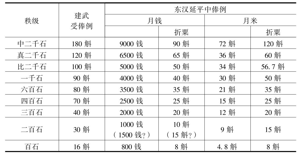 (21)劳榦:《关于汉代官俸的几个推测》,收入《劳榦学术论文集》甲编下册,台湾艺文印书馆1976年版,第1037页以下。