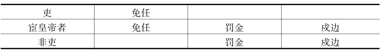 “非吏及宦”四字,原书无注。不过这“宦”字显系“宦皇帝者”省称。这条律文说,对任人“不廉不胜任”、即所保荐者贪污或不称职时,除本人罢免外,其“任者”即保荐人也要免官;那保荐人如果“非吏”,或者是“宦皇帝者”,则其惩罚还得加上罚金和戍边两项。“非吏”无官,其惩罚只有罚金、戍边;“宦皇帝者”有官,其惩罚将有免任、罚金、戍边三项。那么这里所涉及的保任者,就有“吏”、“非吏”和“宦”3种,相关的惩罚也有3等。即如: