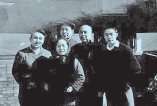 后排右一为庄则栋,右二位庄惕深,前排为庄则栋母亲