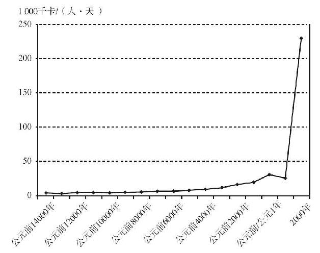 图3.10 公元前14000~公元2000年每千年西方能量获取情况