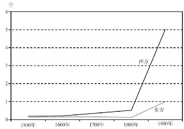 图5.15 1500~1900年,军事革命时代的东西方战争能力