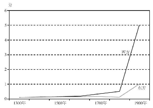 图5.7 1300~1900年东方和西方的战争能力