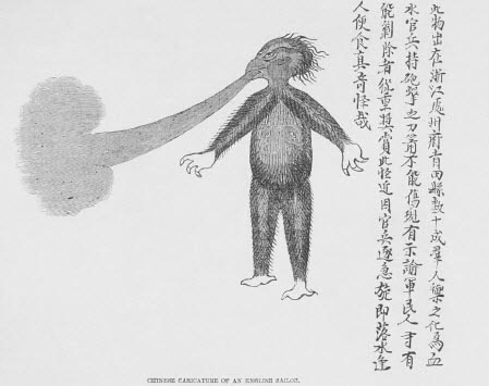 图10-4 文化不一致:中国一幅简笔漫画——口中喷火的英国士兵(1839年)