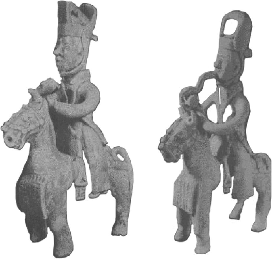 图4 长沙西晋墓的陶俑,高马鞍和单马镫组合(《长沙两晋南朝隋墓发掘报告》图版十一、十二)