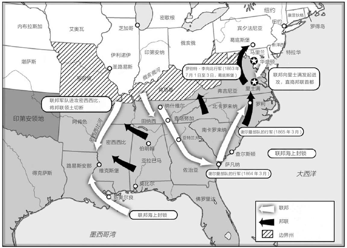 林肯的确也是这样解释的,但是这并不意味着美国人民因此就可以完全理解。很多人认为,林肯做得还不够彻底,因为在那些忠于蓄奴的边境诸州——肯塔基州、特拉华州、马里兰州、密苏里州和1863年形成的西弗吉尼亚州,奴隶制仍旧没有被撼动。另一些人则认为林肯做得太过分了,因为他挑战了仍旧被宪法所保护的蓄奴权。邦联也许一直都在努力脱离联邦,但这场战争的全部意义在于联邦否认邦联这样做的权力,实际上,也否认它已经从联邦脱离。如果正如林肯自己所相信的那样,这场战争只是发生在南方的叛乱,而不是整个南方的叛乱,那么宪法就仍旧适用;如果它仍旧适用,那么奴隶制就是安全的。