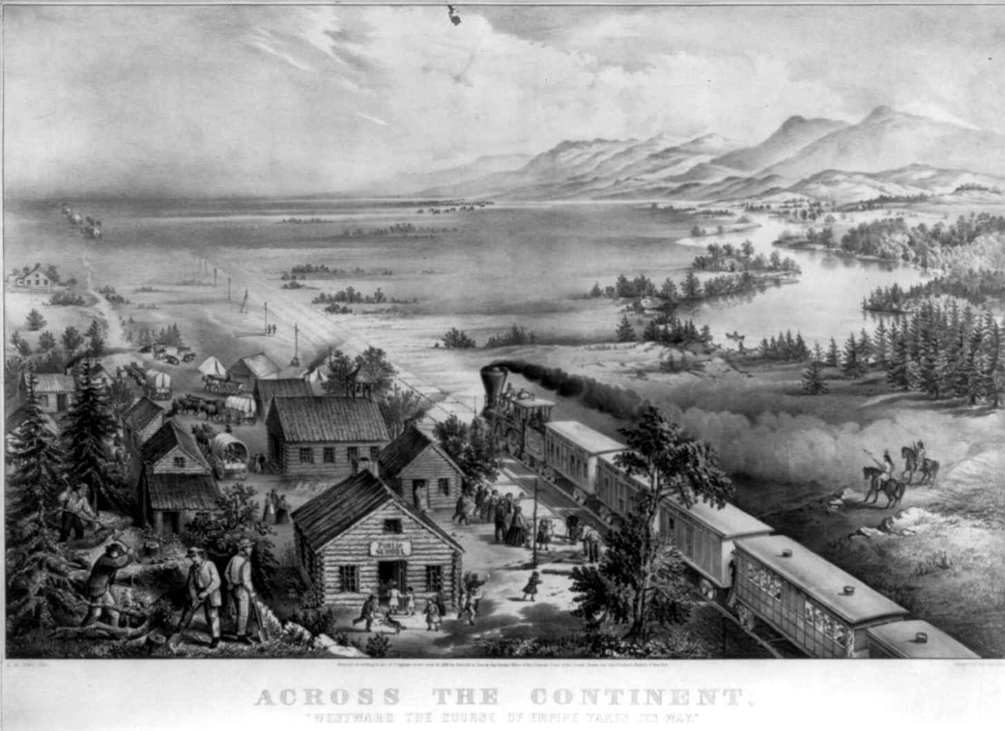 然而,美国人却发现,他们朝向光明前行的冲动与野心多少被一些难题所阻碍:这里面既有非常实际的现实问题,也有政治问题。尽管爱默生相信铁路有潜力连接整个美国,但19世纪中叶的美国人并不能像他们希望的那样,轻易到达这个国家的任何地方。南北铁路线上的巴尔的摩等城市有着不同的轨距标准,也制定了早期的环保法案,迫使铁路建设在中途不得不变道前行。而东西铁路线上面临的不是现实问题,而是政治问题。直到内战爆发,南方反对派遭到议会除名,第一项《太平洋铁路法案》才在1862年得以通过,并且在两年之后又通过第二项铁路法案。当然,南方人并不反对建设横贯北美大陆的铁路,恰恰相反,他们只是希望任何一条这样的铁路及其带来的利益都可以绕道南方。