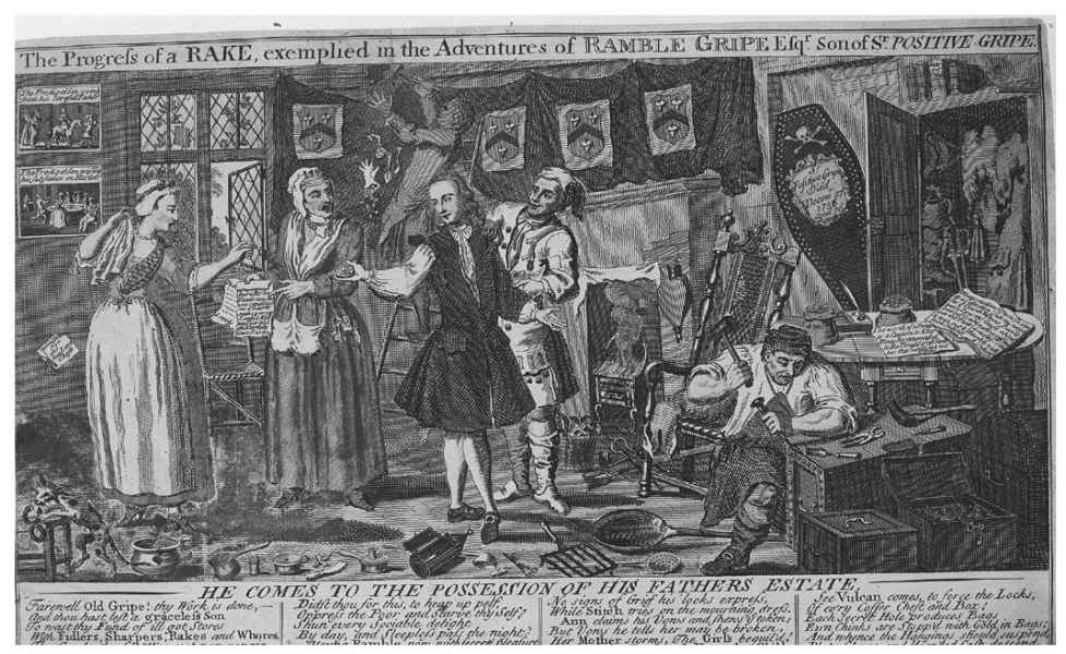 28.威廉·荷加斯的《一个浪子的历程》场景一:一个年轻人继承了遗产