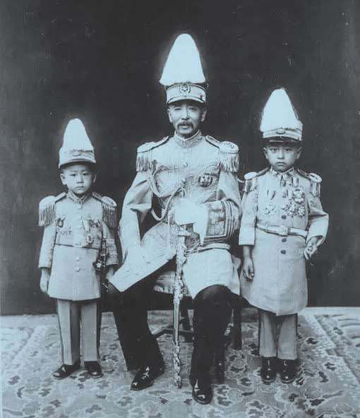 张作霖与第五个儿子张学森(左)、第六个儿子张学浚(右)合影