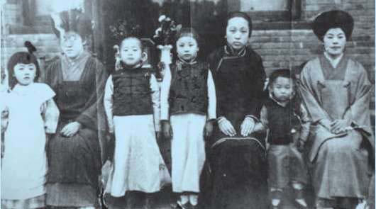 张作霖发妻赵氏带着张学良,与日本领事夫人们合影