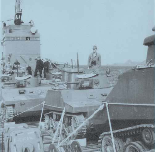日军用军舰运送来增援的坦克。日军坦克其实铁皮不厚,但在火力孱弱的中国士兵面前,已经算得上一头头怪兽