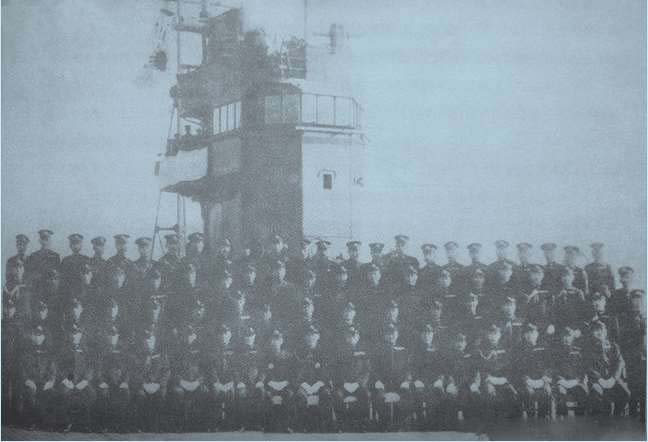 偷袭珍珠港成功后,山本五十六与同僚在“赤城”号航母的飞行甲板上合影