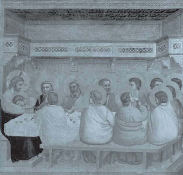 乔托的《最后的晚餐》,犹大就是那个唯一头顶没有光环的人