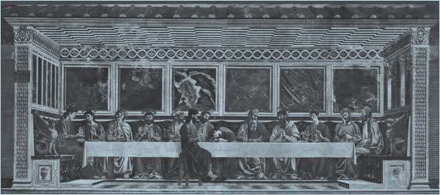 《最后的晚餐》描绘的是耶稣被犹大出卖后,与他的十二圣徒在一起吃最后一顿晚饭的场景。这个著名的故事一直是欧洲各路大神级画家喜欢创作的选题,在达·芬奇之前,有很多名家都以此为题创作过。