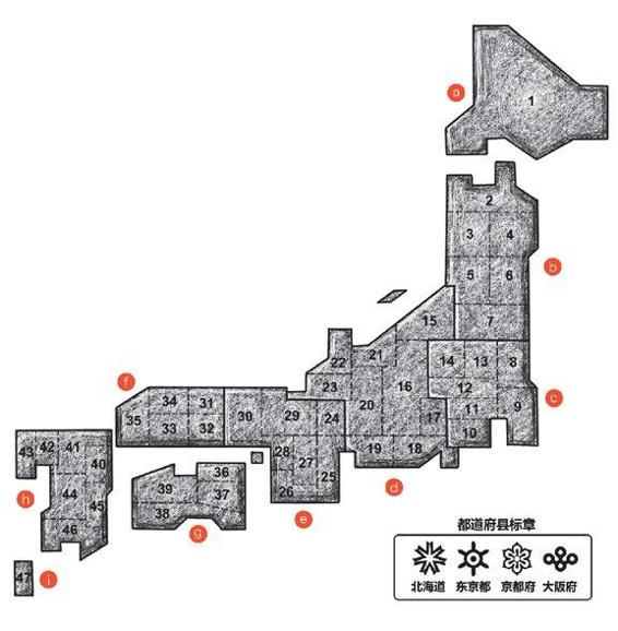 40.大分县 41.福冈县 42.佐贺县 43.长崎县 44.熊本县 45.宫崎县 46.鹿儿岛县