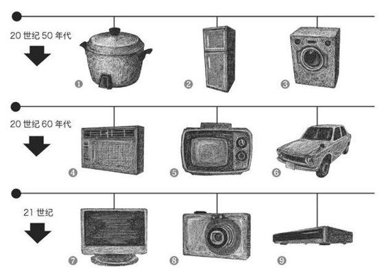 20世纪五六十年代,中国开始流行“三大件”,这指的是手表、自行车和收音机。随着时代发展,“三大件”也在发展更新,70年代变成了手表、自行车和缝纫机,80年代变成了冰箱、彩电和洗衣机,90年代又变成了空调、电脑和录像机。
