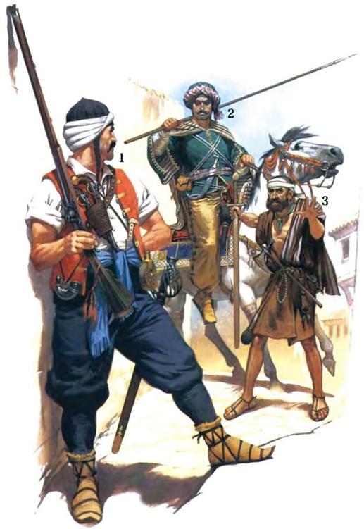 ◎ 1为耶里尼新军军官,2为奥斯曼滑膛枪火枪手,3为耶里尼新军海军。