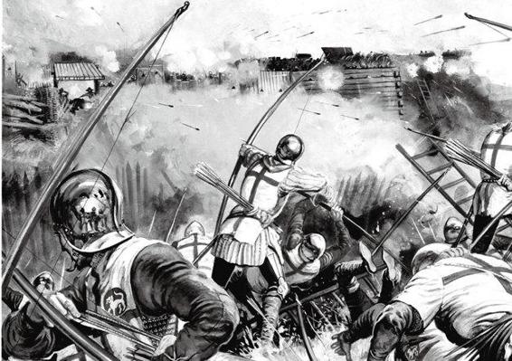 ◎ 卡斯蒂永战役中面对法军火炮阵地的英格兰长弓手。